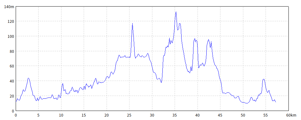 | 水平距離 | 57.26km | 沿面距離 | 57.44km |