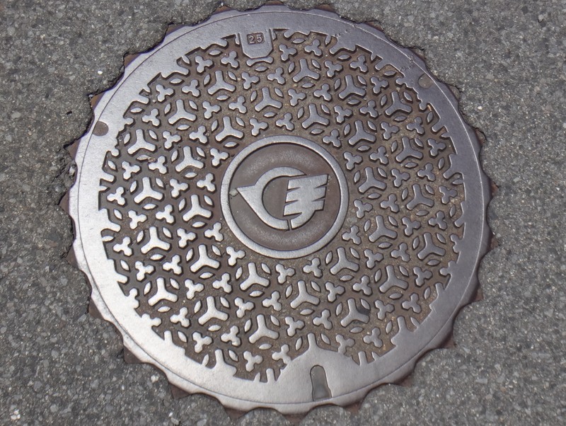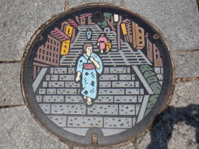 伊香保の石段。合併後の渋川市のものの可能性もあるが、渋川市のデザインマンホールにはすべて市名が入っているがこれは入っていないので、合併前のものと推測。 2024/07/05
